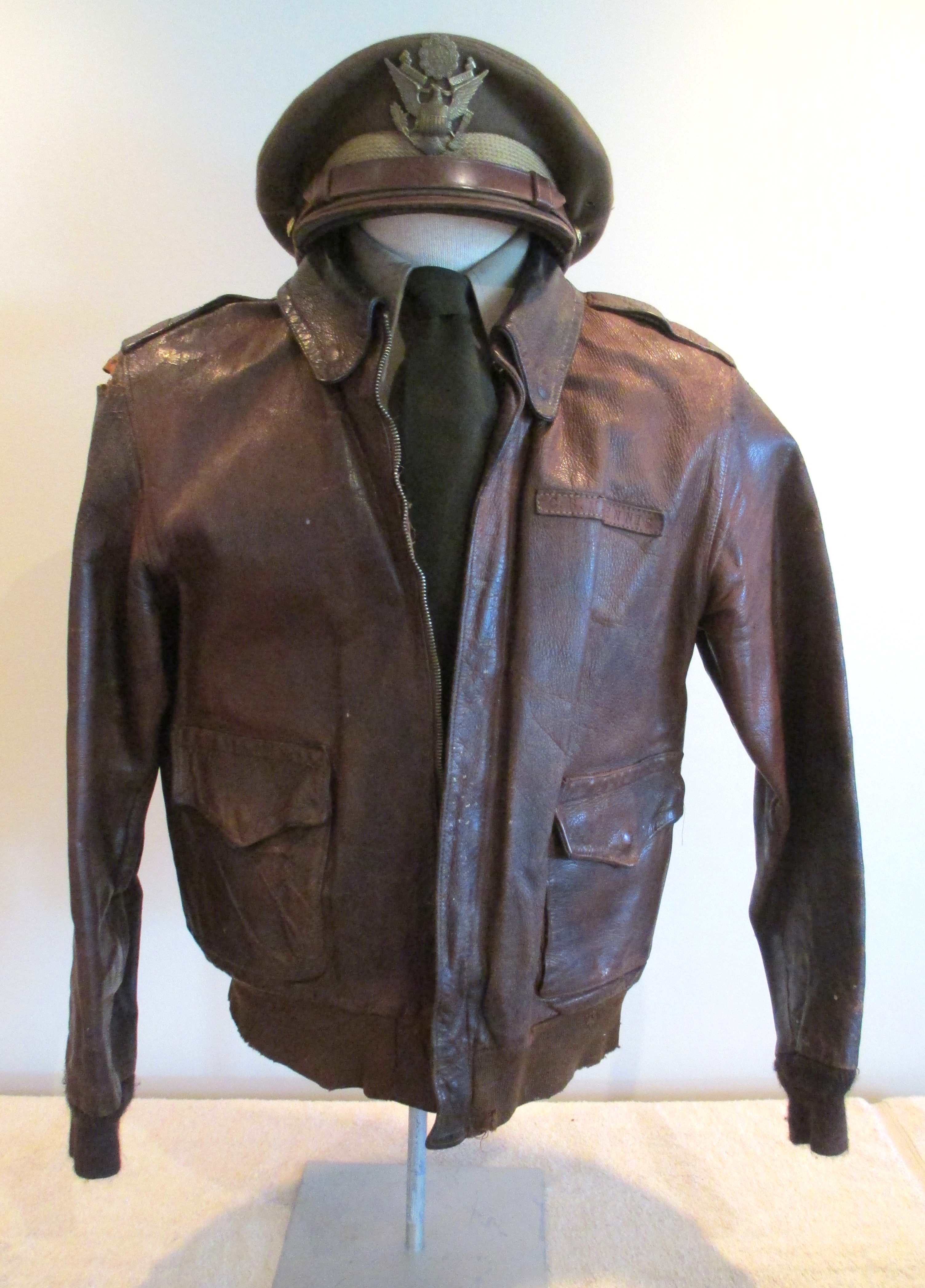 an original painted leather Bomb Squadron patch to chest.