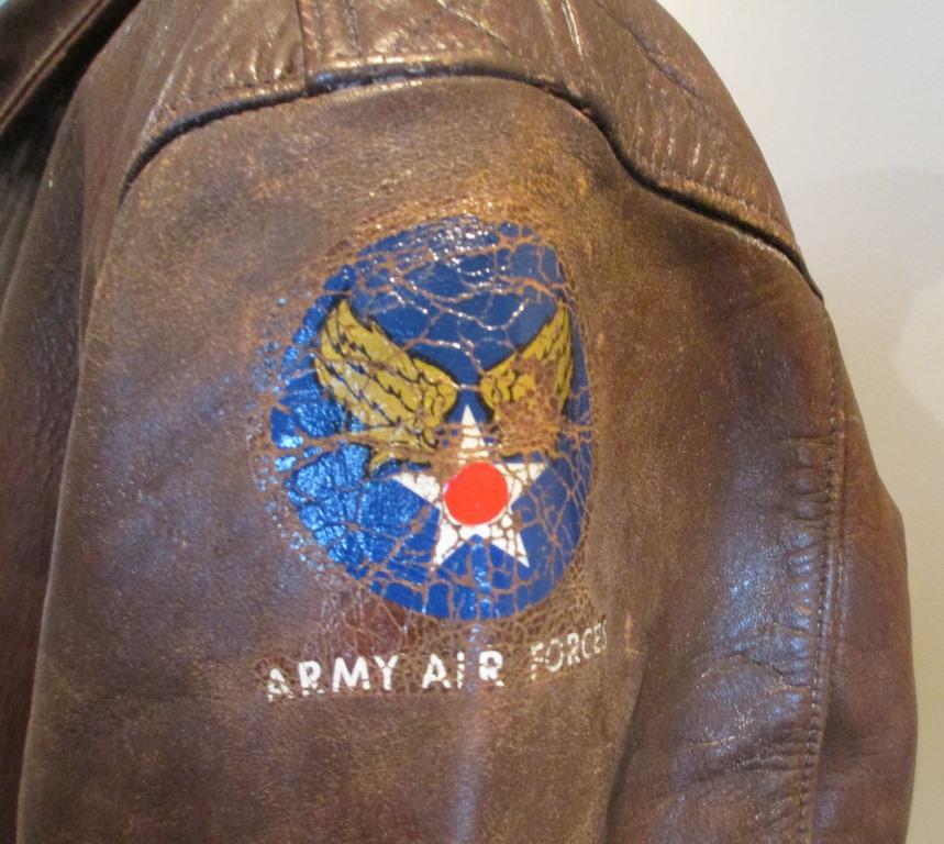 an original painted leather Bomb Squadron patch to chest.