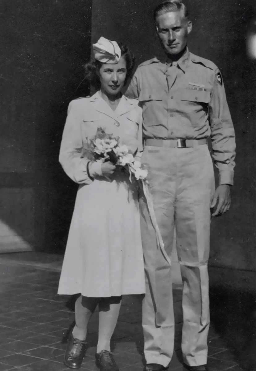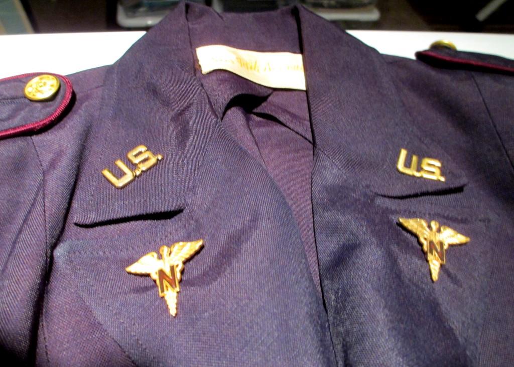 Scare WWII era Santiago blue U.S. Army Air Force Nurse' service dress blouse and skirt.  I.D.ed to Lt. Emily Lowe.  She started her combat service in the ETO and after VE-Day went to Manila until the end of the war.  She was married 3 weeks after returning home from the war in the Pacific.  The images were provided by the family, and the tunic came directly from the family to the collector.  A scarce Woman's AAF uniform variant!